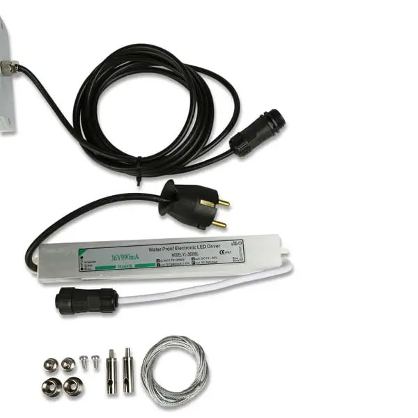 - Lieferumfang: LED Leuchte, Stahlseilaufhängung, LED Treiber