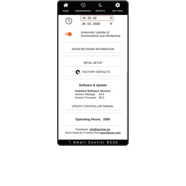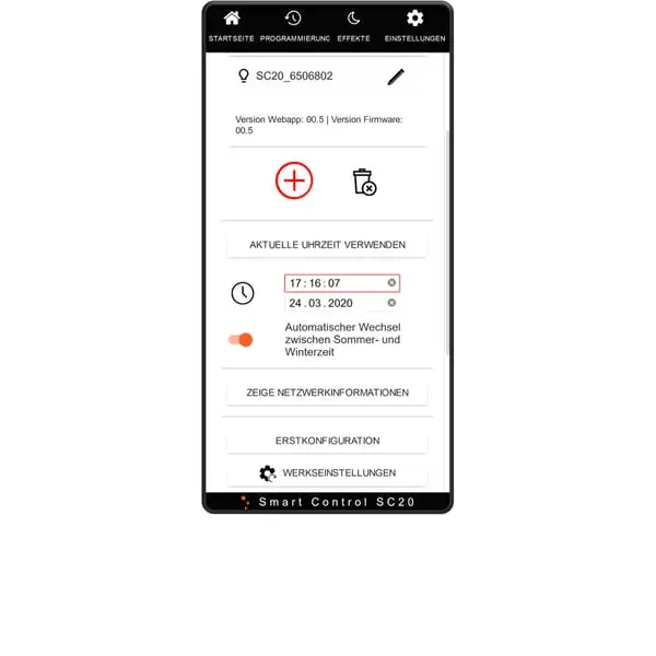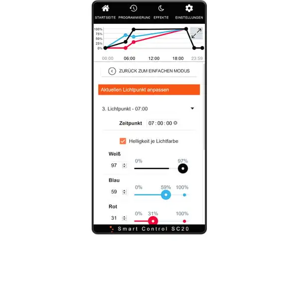 Schaffe mit der daytime Smart Control SC20 natürliche Lichtverhältnisse für Tag und Nacht. Die Programmierung und Steuerung erfolgt bequem mit dem Smartphone, Tablet oder PC. Du kannst die Verbindung einfach über das WLAN-Netzwerk und einen beliebigen Internetbrowser (z. B. Chrome, Firefox usw.) herstellen.