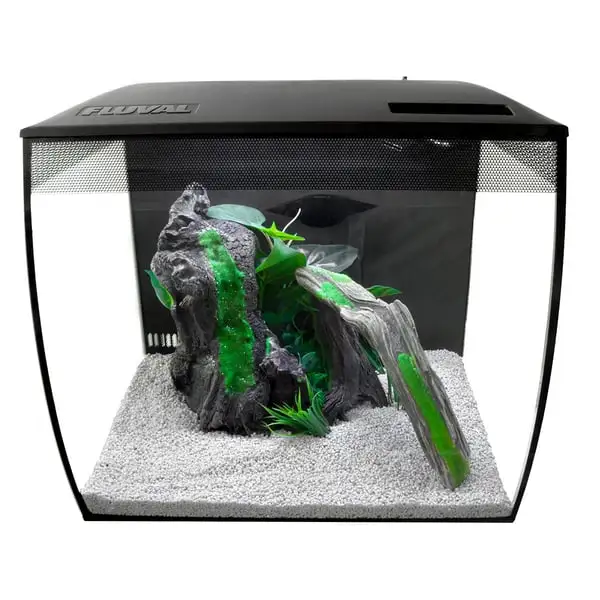 Das Becken ist mit einer leistungsstarken 3-Stufen-Filterung und einem LED-Beleuchtungssystem ausgestattet, dessen verschiedene Einstellungen mit einer Fernbedienung gesteuert werden können. Ein stylisches Honigwabendesign kaschiert die Wasserlinie und die Seiten des hinteren Filterfaches. Das Flex Aquarienset ist ausschließlich für Süßwasser geeignet.