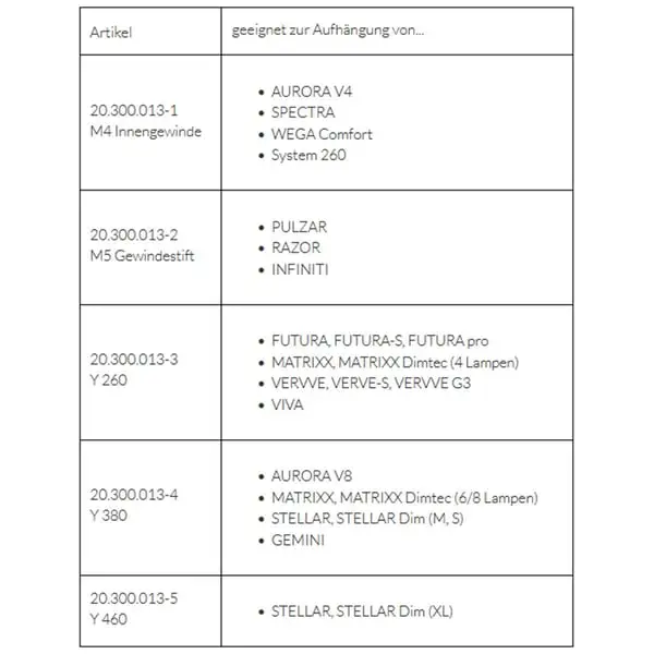 Stahlseilaufhängung mit Höhen- /Neigungsverstellung für MATRIXX II (4 Lampen) FUTURA, VERVVE und VIVA.