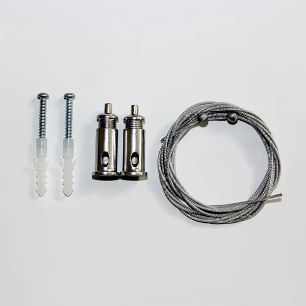 Lieferumfang: 2 Dübel & 2 Schrauben mit 2 Spezialaufnahmen (für die Decke), 2x 150 cm Edelstahlseil.