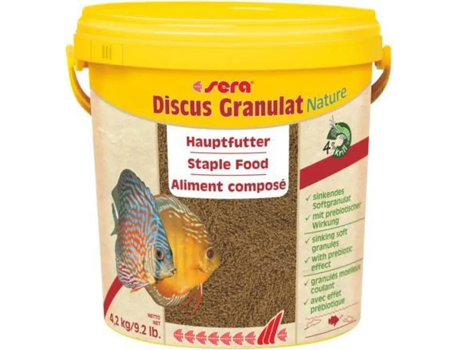 Sera Discus Granulat Nature ist ein Basisfutter ohne Farb- und Konservierungsstoffe aus schonend hergestelltem Weichgranulat für alle Diskussionen (auch Jungfische) und andere anspruchsvolle Zierfische.